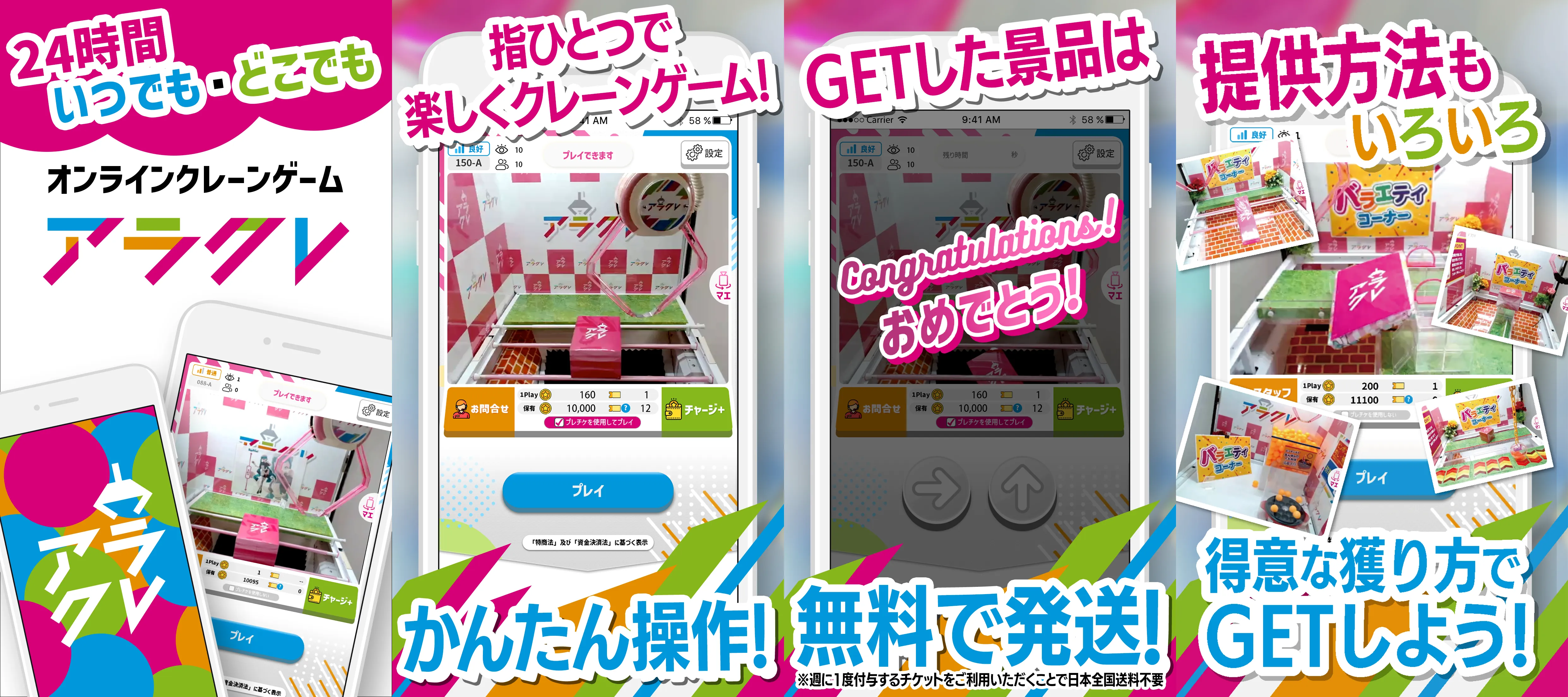 24時間365日いつでもプレイすることができ、景品は有名ブランドの家電やフィギュア、カードゲーム等!