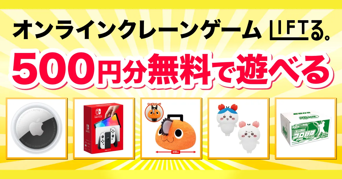 「LIFTる。」は、大人気ゲームから家電まで新しい景品が毎日登場するオンラインクレーンゲームです。