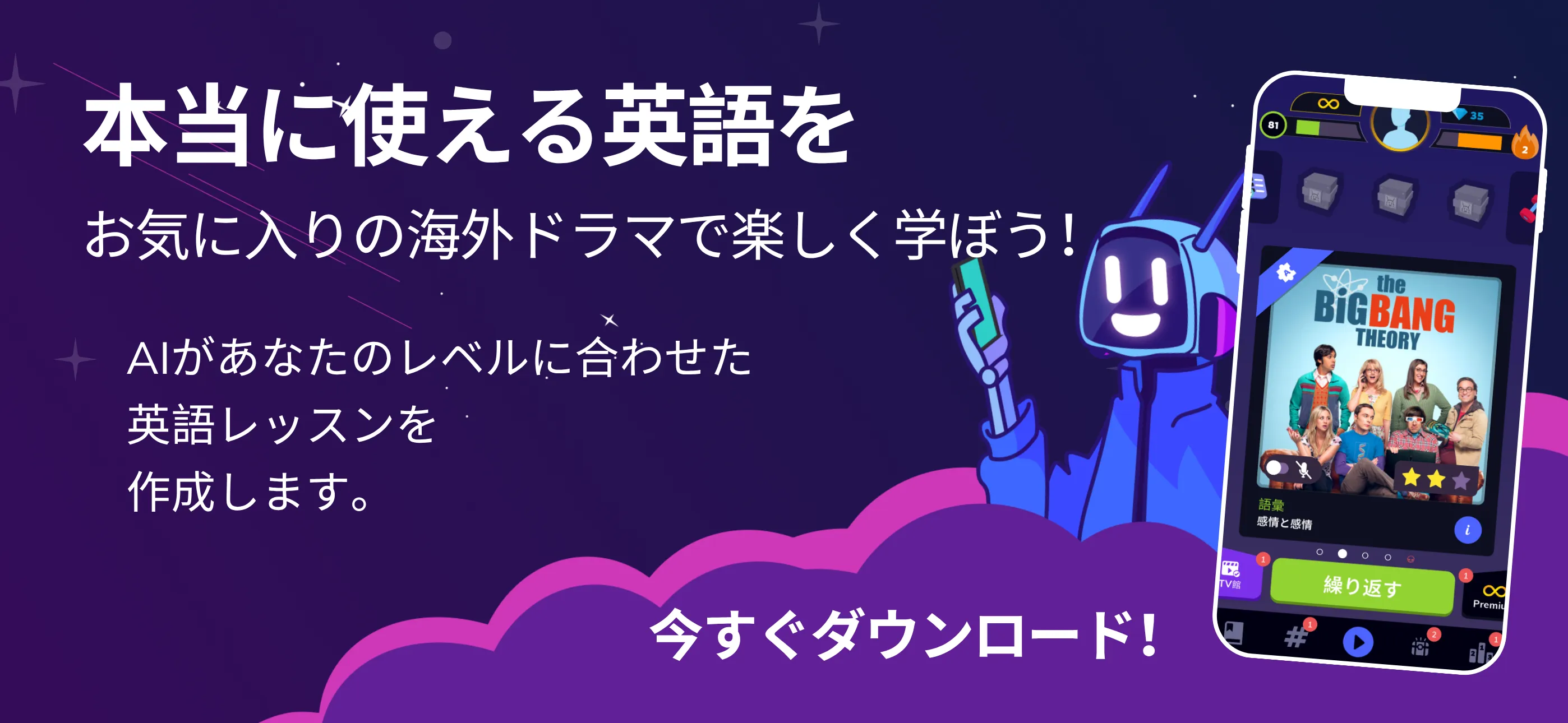 AIだから失敗しても怖くない!どんな人にもおすすめ! | 幅広く英語学習したいならこれに決まり! | 映画・ドラマを使いながら英語を学べる! |